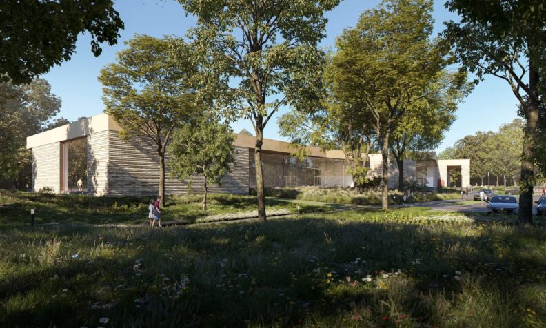 In het ontwerp van Slangen+Koenis Architecten is veel aandacht gegeven aan duurzaamheidsprincipes als klimaatadaptie, waterbuffering en het benutten van natuur. Het nieuwe gebouw zal zo worden ingepast in de omgeving dat het bestaande groen – waaronder een aantal hoge karakteristieke bomen – blijft behouden en wordt beschermd. Deze ontwerpkeuze past goed bij het gemeentebeleid, omdat groen een positief effect heeft op de leefbaarheid en gezondheid van de bewoners en gebruikers. Tevens zorgt groen voor biodiversiteit, natuurlijke schaduw en CO2-opvang. De bezoekers hebben zicht op dit groen door grote glaspuien die tot aan de dakrand reiken. Met het groene dak als ‘vijfde gevel’ en het zichtbaar maken van het opgevangen hemelwater wordt het duurzame karakter van het gebouw extra benadrukt.