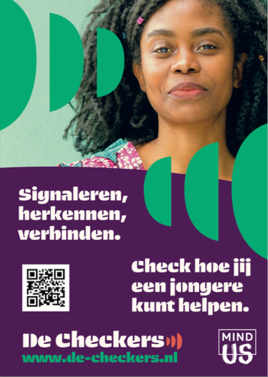 Stichting MIND Us zet zich in voor verbetering van de mentale gezondheid van jongeren in Nederland. MIND Us bundelt krachten, stimuleert vernieuwende initiatieven en geeft mentale problemen van jongeren de juiste aandacht. Samen met jongeren, beleidsmakers, gemeentes, ondernemers en wetenschappers creëert MIND Us een podium waar jongeren zich gezien en gehoord voelen. “We willen daarmee bereiken dat jongeren meer grip krijgen op hun mentale gezondheid, zich weer krachtig kunnen ontwikkelen en ook hulp weten te vinden wanneer dat nodig is”, zegt Kelly Commandeur, projectleider De Checkers bij MIND Us.